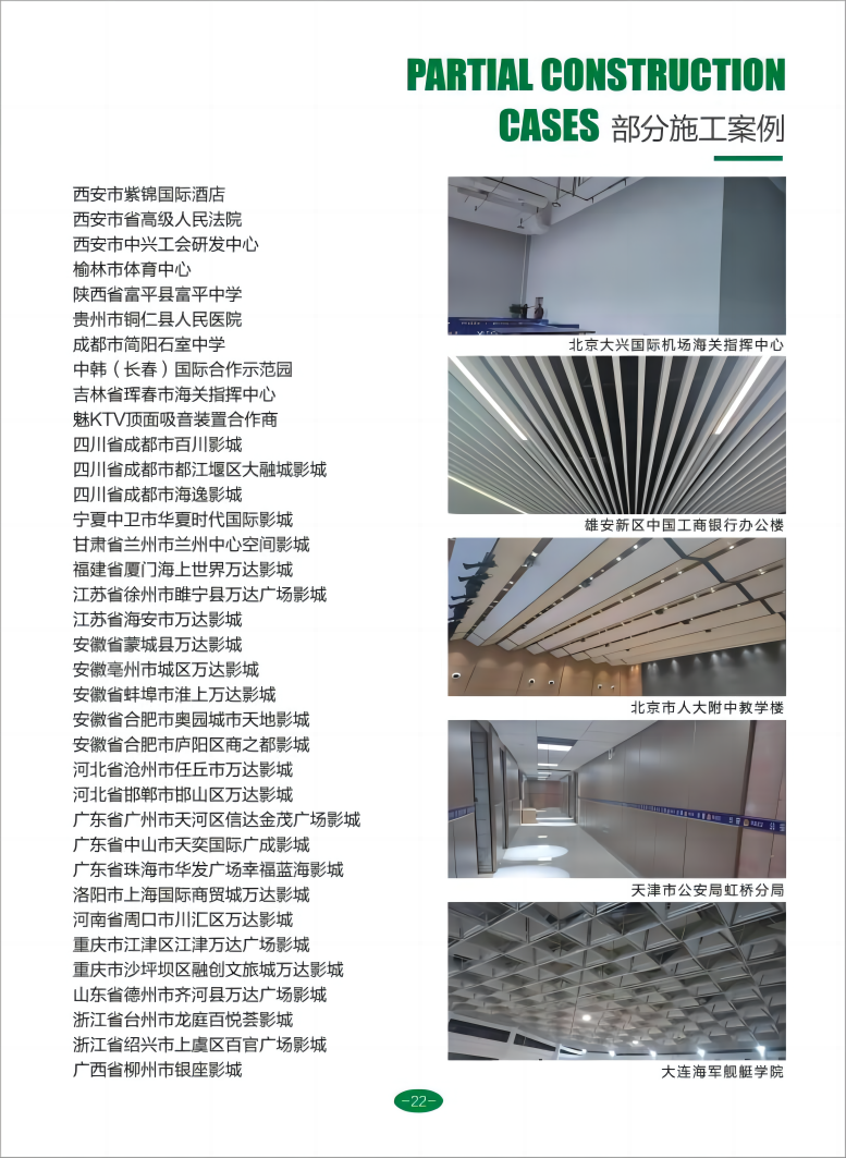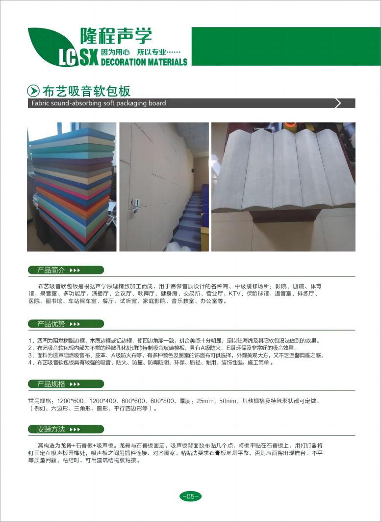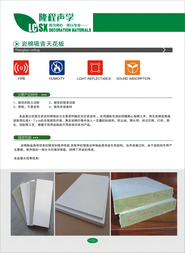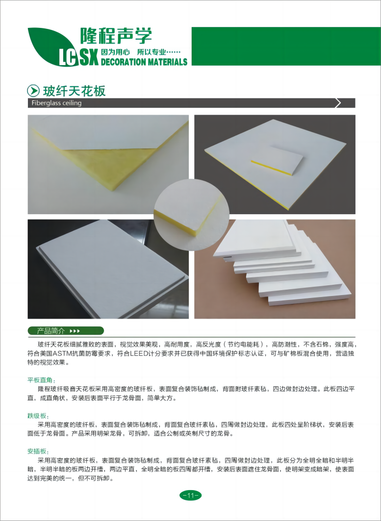布艺吸音软包板、玻纤天花板、悬挂式空间吸声体、岩棉玻纤天花板、机房专用复合穿孔吸音板、玻纤格栅、矿棉吸音板、超薄玻璃棉板、无甲醛环保型玻纤板、阻燃软包基材板、吸声填充棉等各种吸音、吸声、防火装饰材料,适配多元使用场景