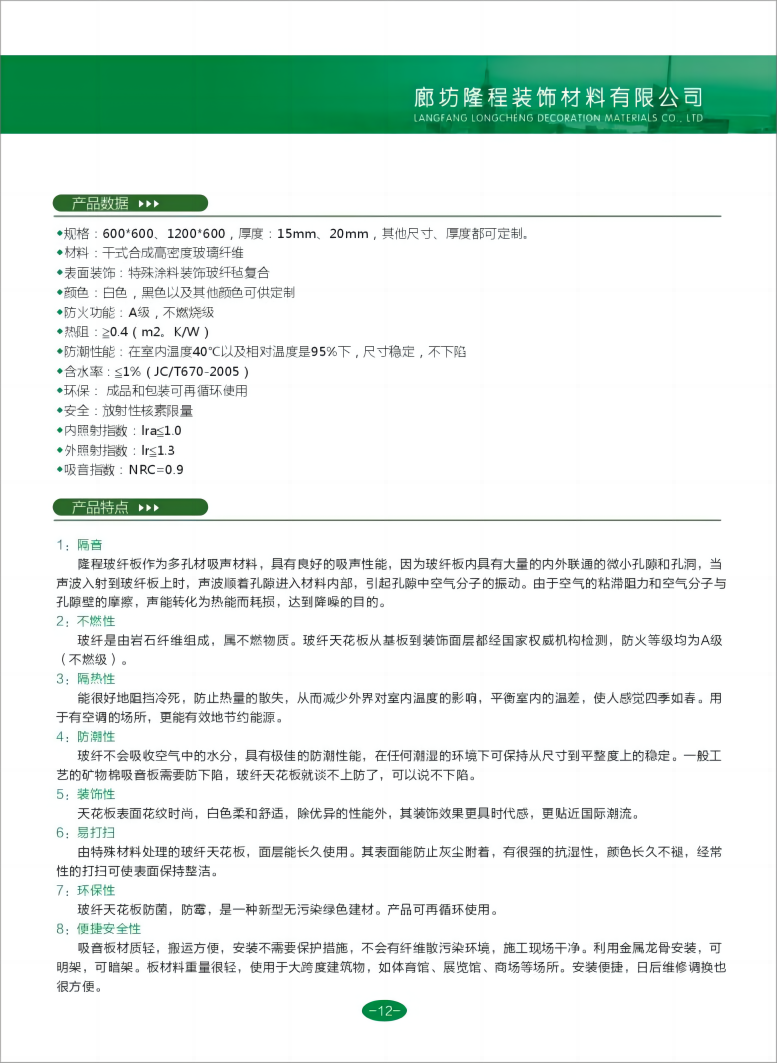 廊坊隆程装饰材料有限公司,坐落于素有中国 “保温之乡” 美誉的河北省大城县保温材料工业区,是一家专注于玻纤声学材料研发与生产的现代化企业。公司配备国内先进生产设备与核心技术,汇聚一批高级技术人才与资深管理团队,为产品品质与创新提供坚实保障。